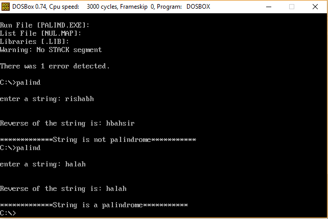 msg3 db cr, lf, cr, lf, '*************String is a palindrome***********$'