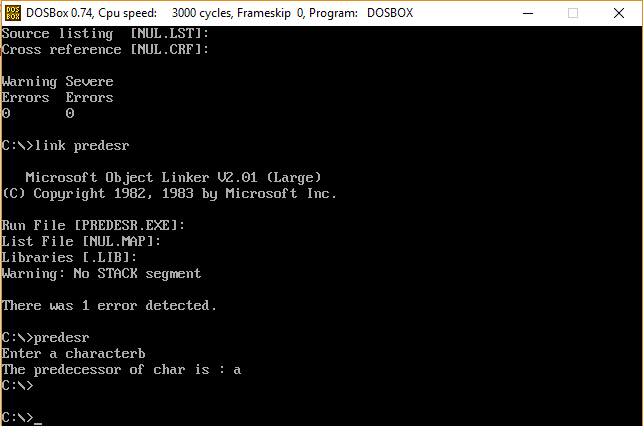 msg2 db cr,lf,'The predecessor of char is : ','$'
